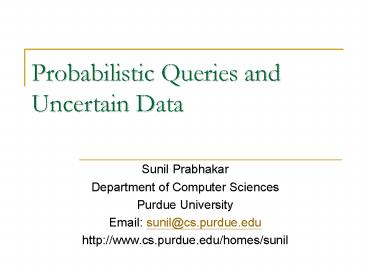 <Notice: Removed> Probabilistic Queries and Uncertain Data PowerPoint PPT Presentation