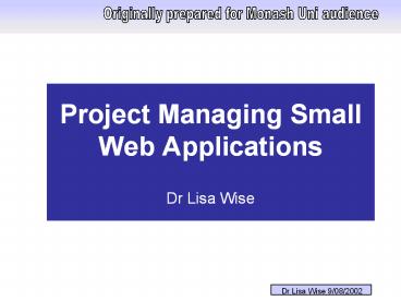Title: Project Managing Small Web Applications Dr Lisa Wise