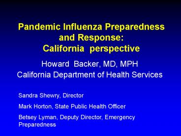 Title: Pandemic Influenza Preparedness and Response: California perspective