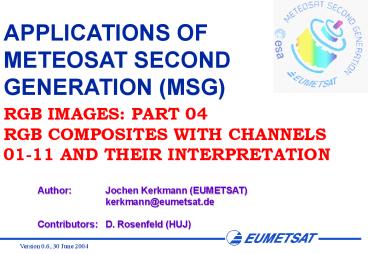 1APPLICATIONS OF METEOSAT SECOND GENERATION (MSG)