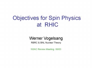 Werner Vogelsang RBRC BNL Nuclear Theory NSAC