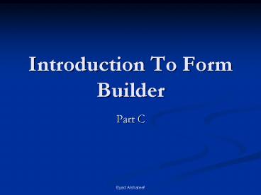 Title: Introduction To Form Builder