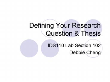1Defining Your Research Question Thesis