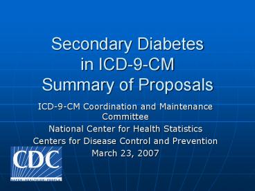 Secondary Diabetes in ICD-9-CM Summary of Proposals PowerPoint PPT Presentation