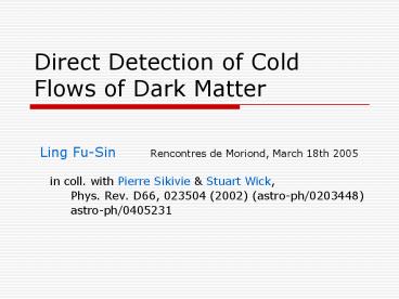 Direct Detection of Cold Flows of Dark Matter PowerPoint PPT Presentation