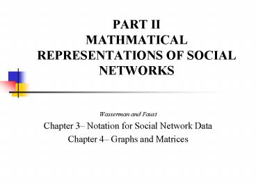 PART II MATHMATICAL REPRESENTATIONS OF SOCIAL NETWORKS PowerPoint PPT Presentation