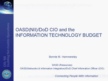 1OASD(NII)/DoD CIO and the INFORMATION TECHNOLOGY