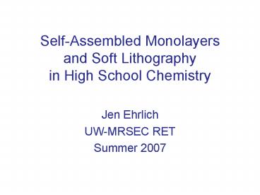 Title: SelfAssembled Monolayers and Soft Lithography in High School Chemistry