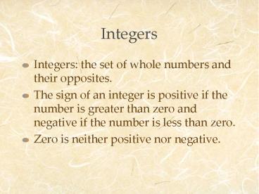 be used with those integers to solve the problem. - Then use the rules of integers to solve the