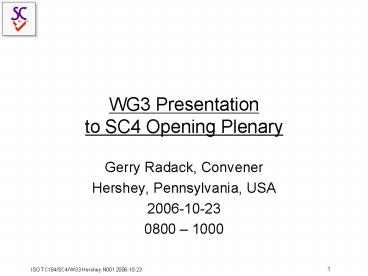 1WG3 Presentationto SC4 Opening Plenary