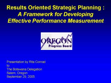 Title: Results Oriented Strategic Planning :