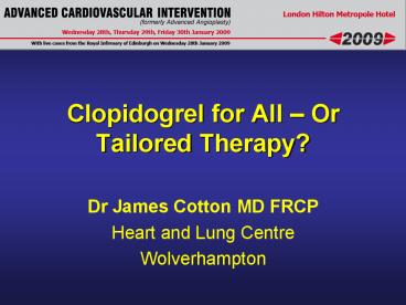 1Clopidogrel for All Or Tailored Therapy?