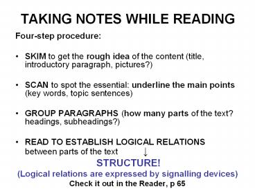 <Notice: Removed> TAKING NOTES WHILE READING PowerPoint PPT Presentation