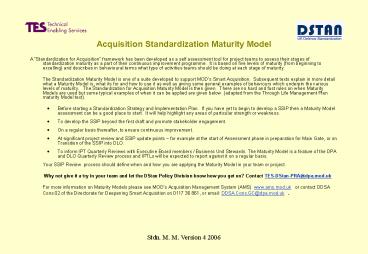 Title: Acquisition Standardization Maturity Model