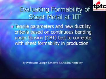 Evaluating Formability of Sheet Metal at IIT PowerPoint PPT Presentation