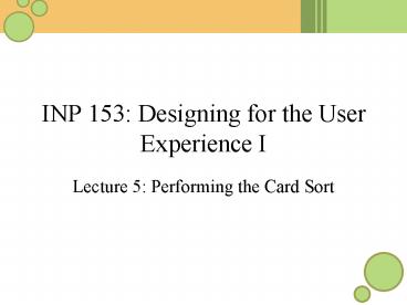 INP 153: Designing for the User Experience I PowerPoint PPT Presentation