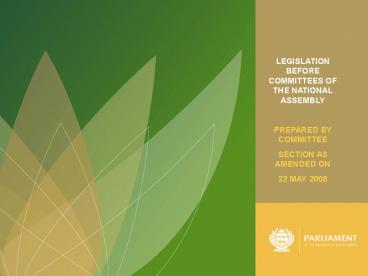 <Notice: Removed> LEGISLATION BEFORE COMMITTEES OF THE NATIONAL ASSEMBLY PowerPoint PPT Presentation