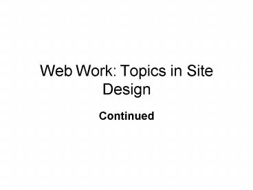 Title: Web Work: Topics in Site Design