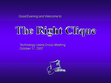 Technology Users Group Meeting October 17, 2007