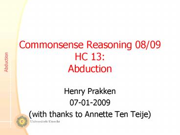 1Commonsense Reasoning 08/09HC 13 Abduction