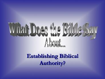 Establishing Biblical Authority PowerPoint PPT Presentation