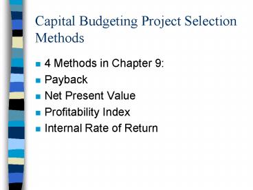 Capital Budgeting Project Selection Methods PowerPoint PPT Presentation