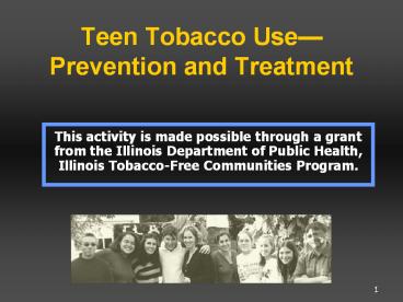 cigarette, and 3,000 teens become daily smokers. - 4.5 million teens are now tobacco users.