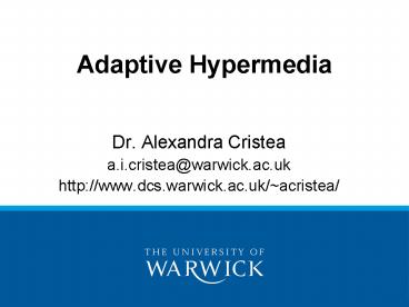 <Notice: Removed> Adaptive Hypermedia PowerPoint PPT Presentation