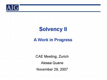 Title: Solvency II A Work in Progress