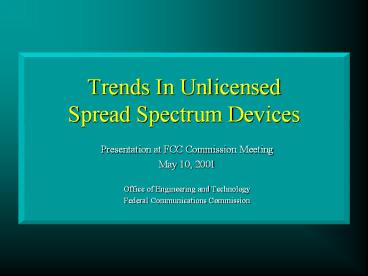 Trends In Unlicensed Spread Spectrum Devices PowerPoint PPT Presentation