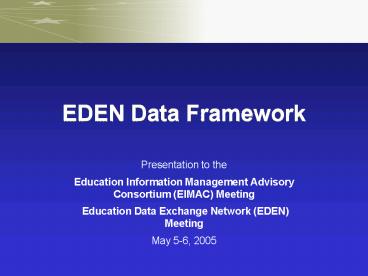 Consortium (EIMAC) Meeting - Education Data Exchange Network (EDEN) Meeting