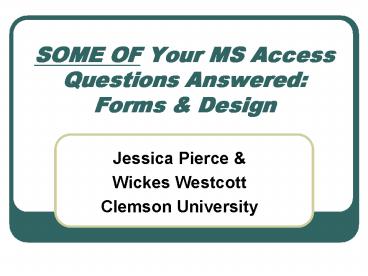 <Notice: Removed> SOME OF Your MS Access Questions Answered: Forms PowerPoint PPT Presentation