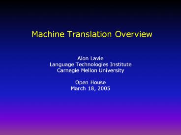 Title: Machine Translation Overview