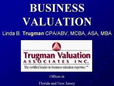 - Linda B. Trugman CPA/ABV, MCBA, ASA, MBA