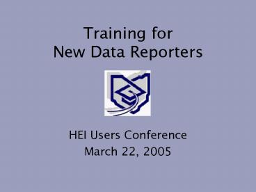Title: Training for New Data Reporters