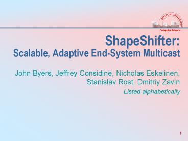 ShapeShifter: Scalable, Adaptive EndSystem Multicast PowerPoint PPT Presentation