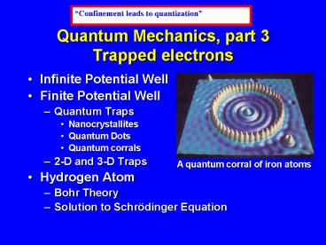 Title: Quantum Mechanics, part 3 Trapped electrons
