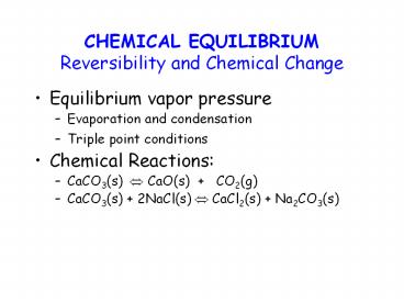 Title: CHEMICAL EQUILIBRIUM Reversibility and Chemical Change