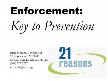 1Enforcement Key to Prevention Erica Schmitz,
