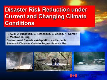 Title: Disaster Risk Reduction under Current and Changing Climate Conditions