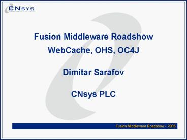 Fusion Middleware Roadshow - 2005