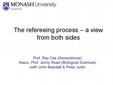 Prof. Ray Cas (Geosciences) Assoc. Prof. Jenny