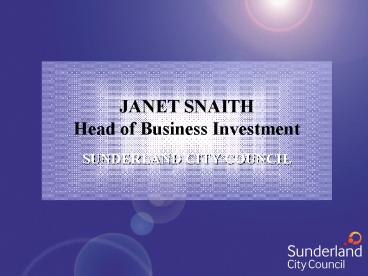 Title: JANET SNAITH Head of Business Investment SUNDERLAND CITY COUNCIL