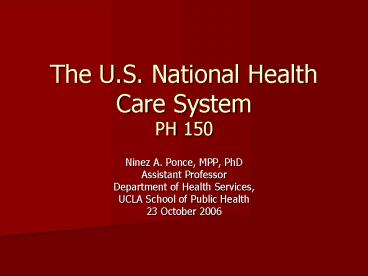 <Notice: Removed> The U.S. National Health Care System PH 150 PowerPoint PPT Presentation