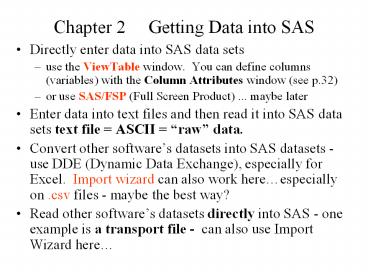 Chapter 2 Getting Data into SAS PowerPoint PPT Presentation