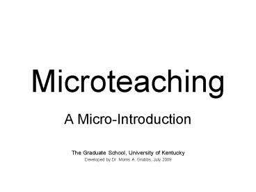 - Developed by Dr. Morris A. Grubbs, July 2009