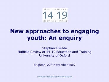 New approaches to engaging youth: An enquiry PowerPoint PPT Presentation
