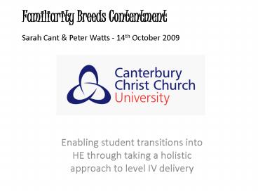 1Familiarity Breeds ContentmentSarah Cant Peter