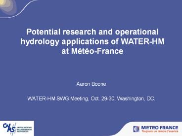 applications of WATER-HM at Météo-France