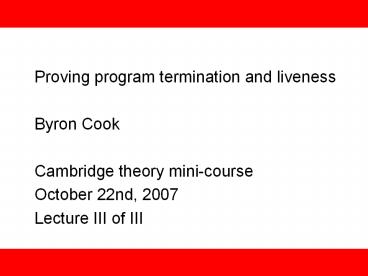 <Notice: Removed> Proving program termination and liveness PowerPoint PPT Presentation